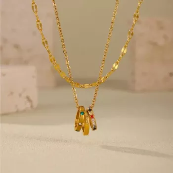 18K Gold Plated Triple Circle Pendant Necklace for Women